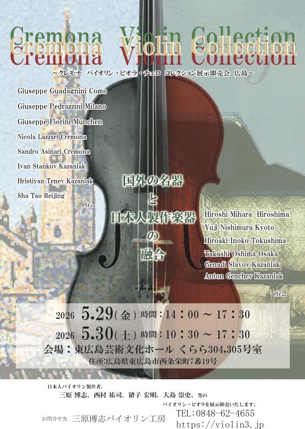 弦楽器の展示会『Cremona Violin Collection』を下記のとおり開催することとなりました。