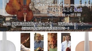 展示会 ※終了しました~展示会のご案内 2024.12.14 Cremona Violin Collection 東広島 2024年12月14日(土)10:30~17:30展示会のご案内 Cremona Violin Collection 東広島東広島市市民文化センター 2F展示室コーナーお問い合わせ先:三原博志バイオリン工房 0848-62-4655 2024.10.25 展示会終了しました